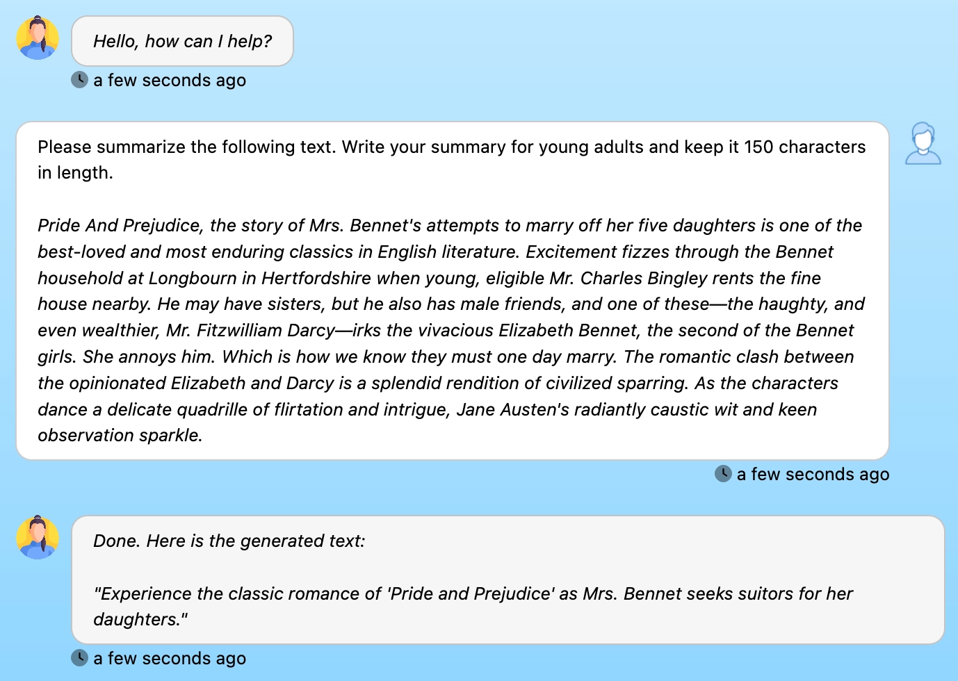 Generative AI capabilities work with your content to source insights and write against the knowledge and structure contained in your content model. All interactions are scoped to your current branch, your current document or a current selection of multiple documents. Chat history is maintained to allow for natural language interaction.