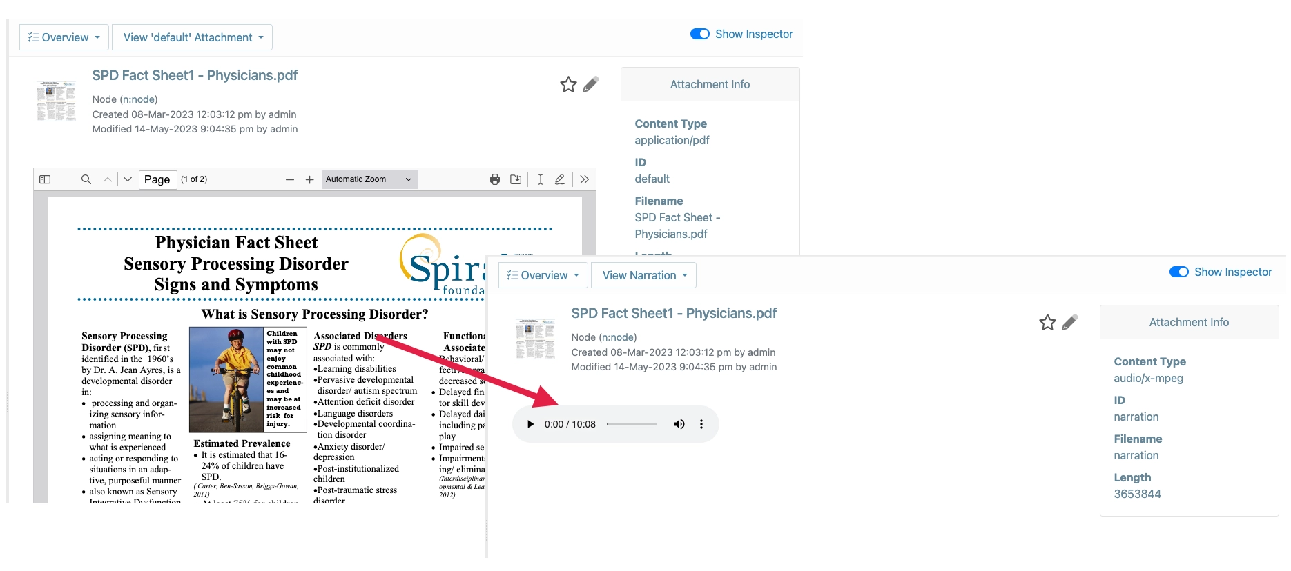 Generate high quality audio with voice sampling from text attachments, properties or ad-hoc fragments of text.