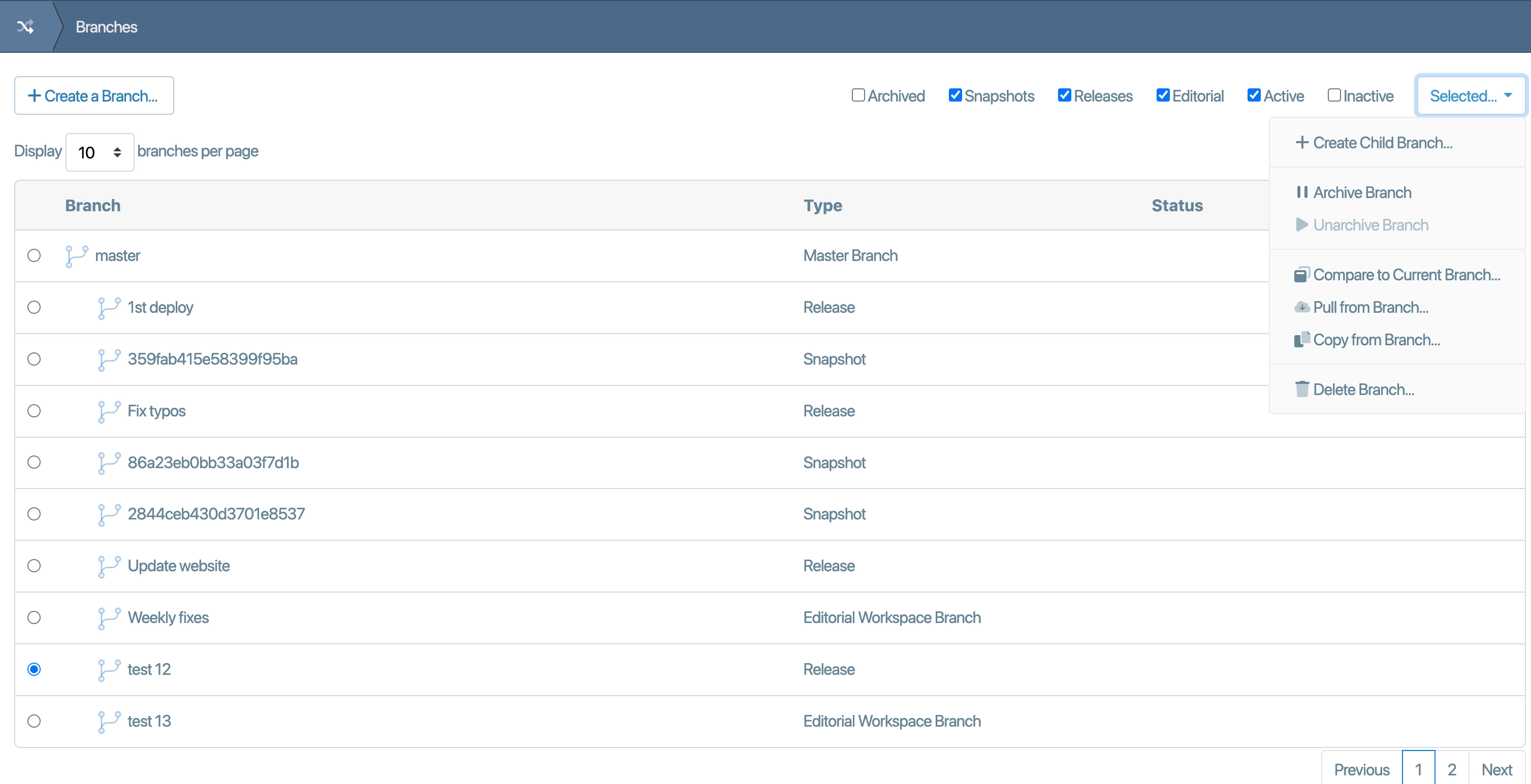 It's easy for editorial users to create new branches and try out new ideas. Write fresh and inspired updates to your web content. Cherry pick from the best ideas to pull together your final, approved and published release.