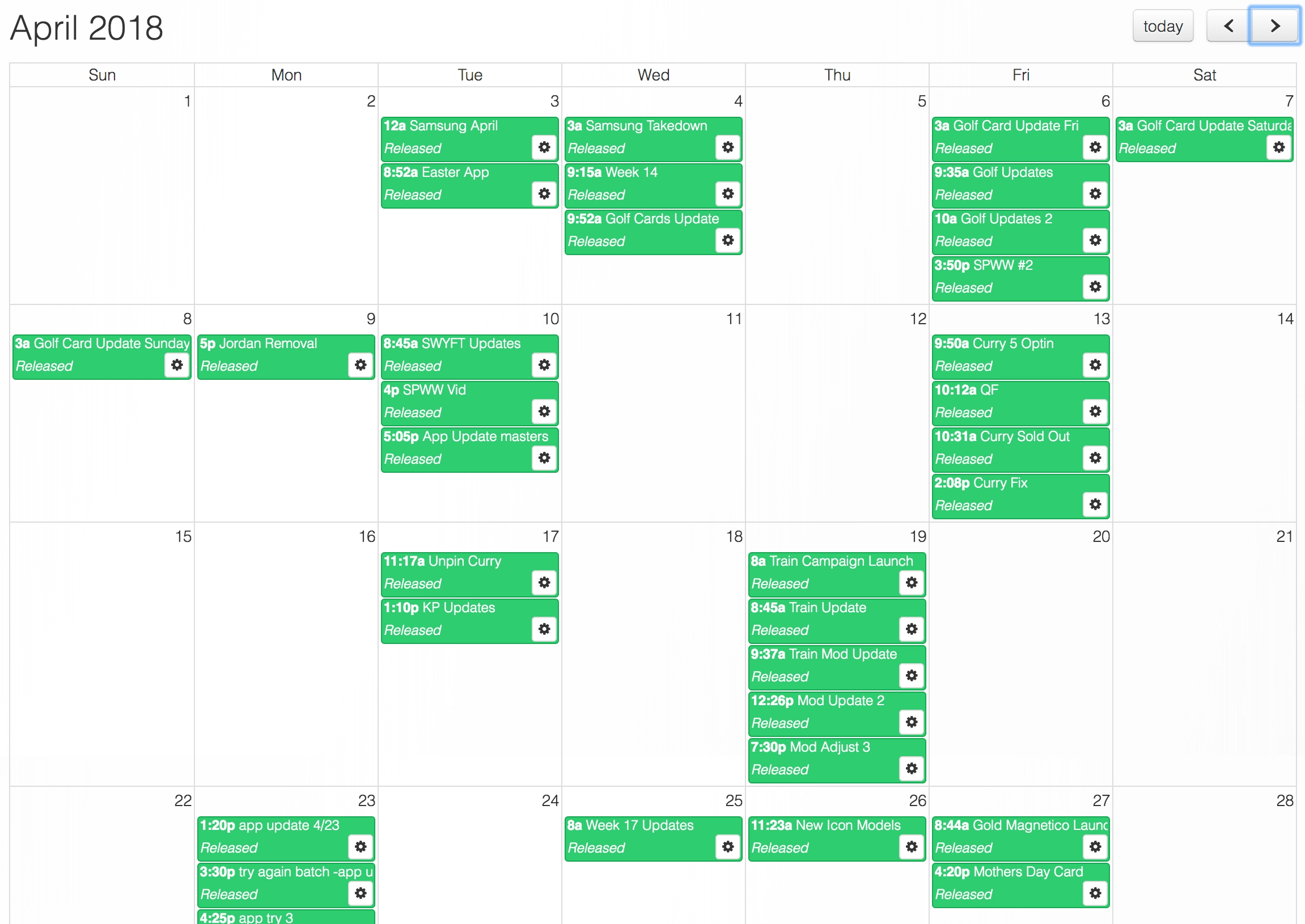 When a scheduled Release goes live, it merges and triggers a series of events. These include sending emails, trigger Slack notifications and publishing to remote endpoints such as CDNs, S3 or other Gitana installations around the world.