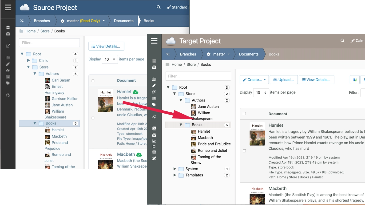 Migrate data between development, authoring, test and live environments automatically using real-time sync and subscription-based push and pull.