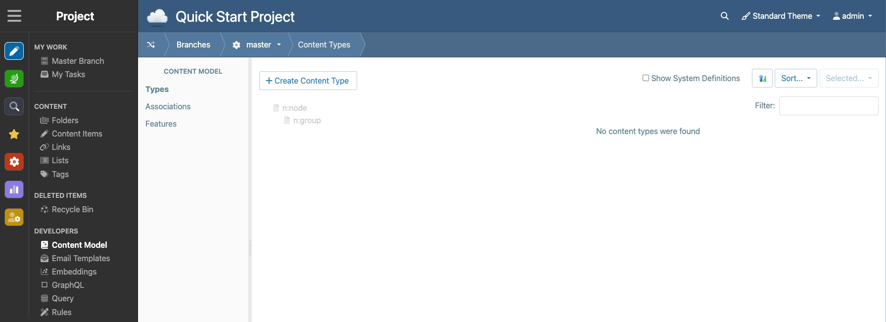 Content Types are used to define the properties and relationships of your structured content. Read more about Content Modeling.