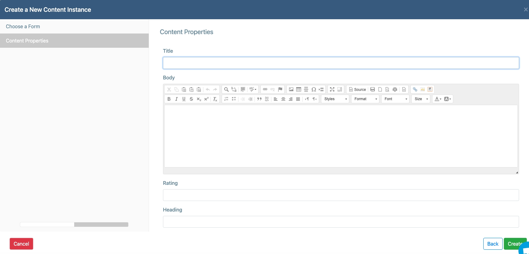 If you have multiple Content Types defined, they'll show up on the left-hand side.