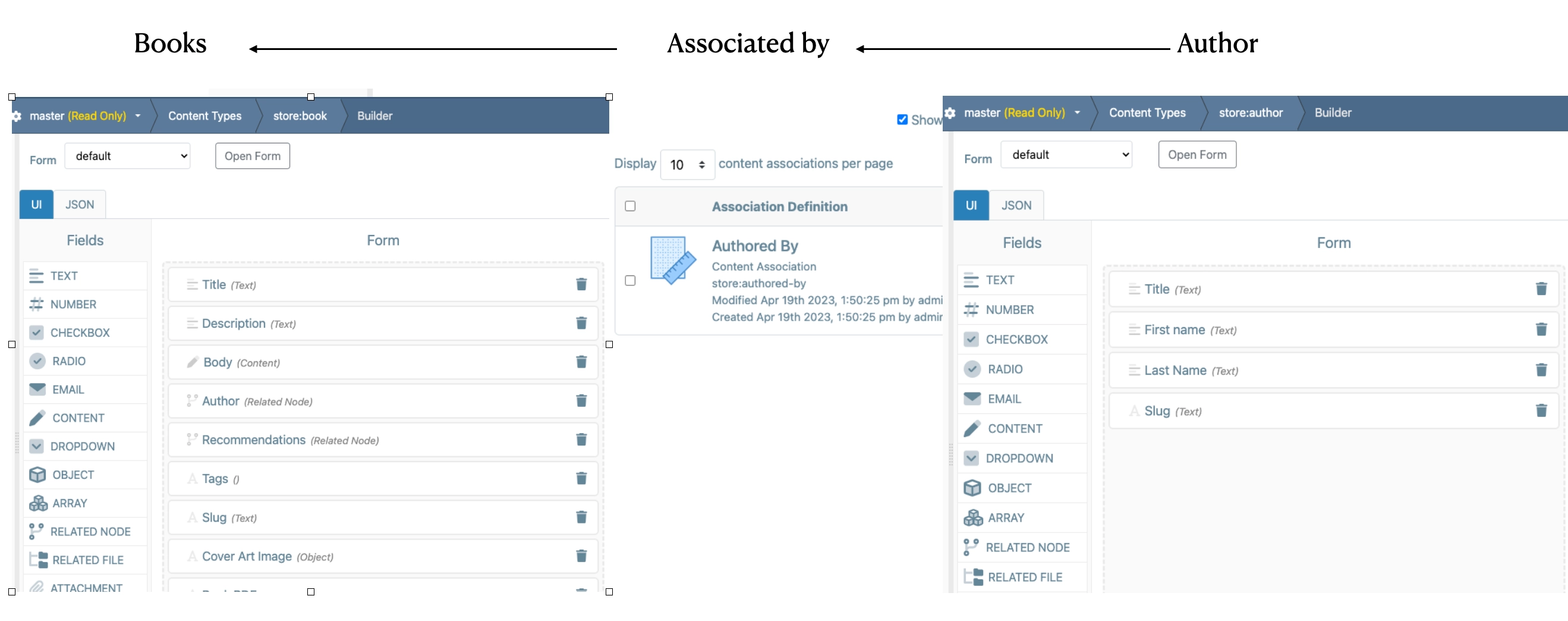 Content Nodes are connected together via Associations to form a graph structure that can be traversed, queried or navigated via GraphQL and the API.