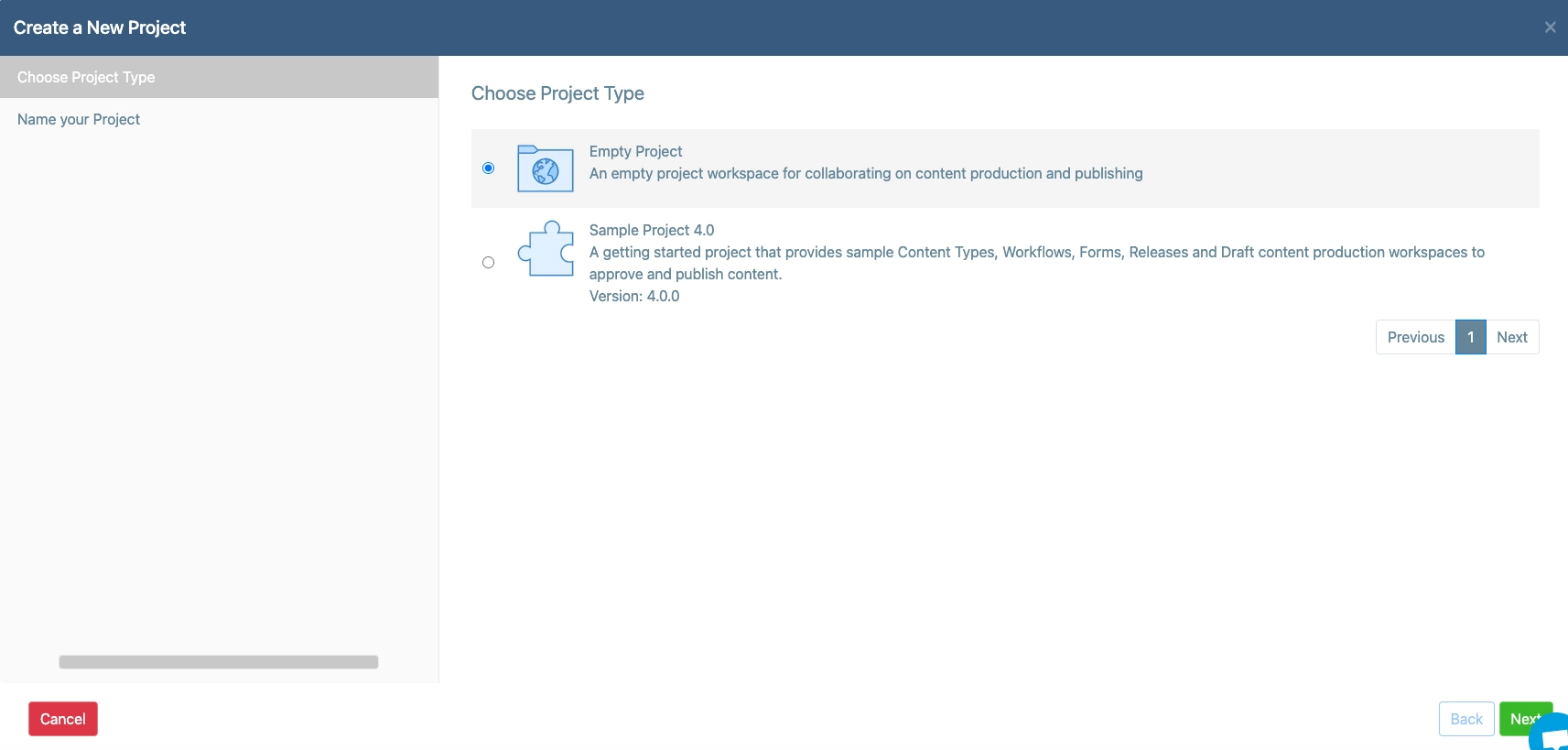 We'll start by creating an empty Project. Later we will add content into this new project.