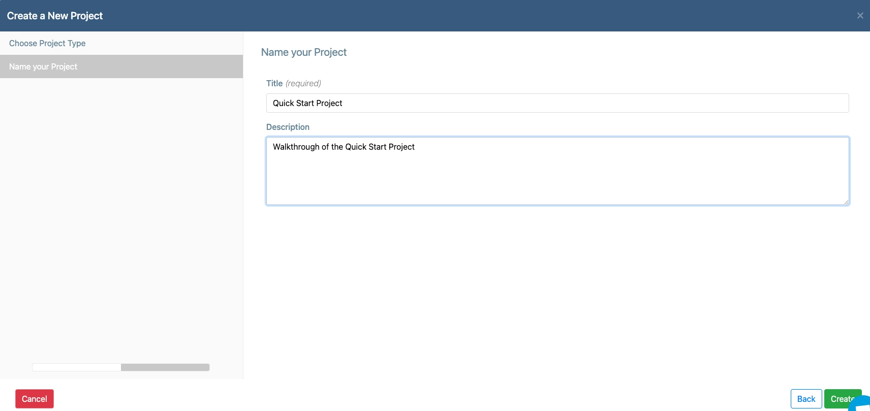 We now need to give our Project a Name and, if you're so inclined, a Description.